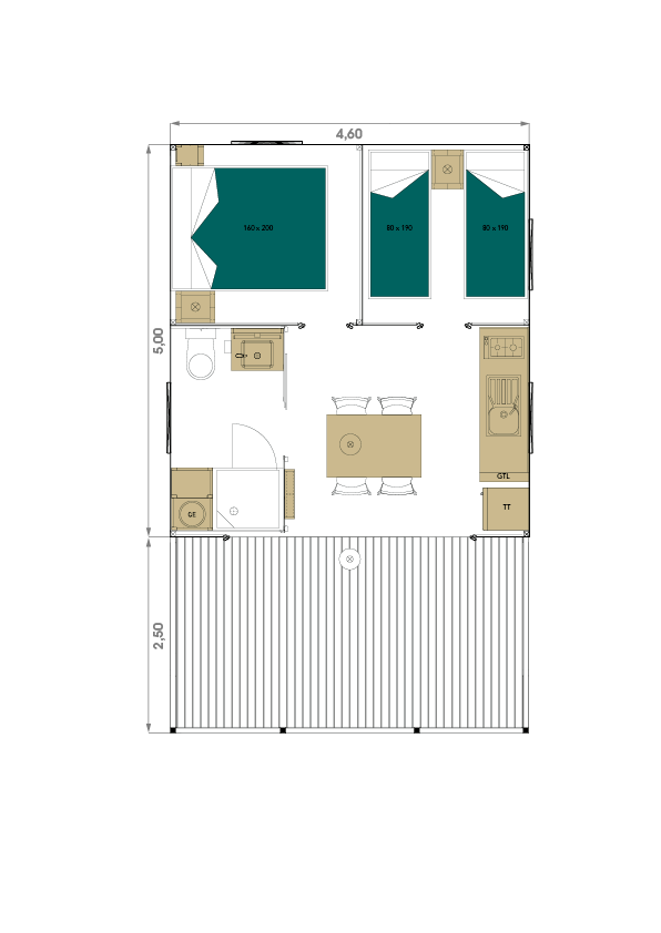 The open kitchen opens onto the terrace, the bathroom with toilet is spacious and the rooms are comfortable and include storage.