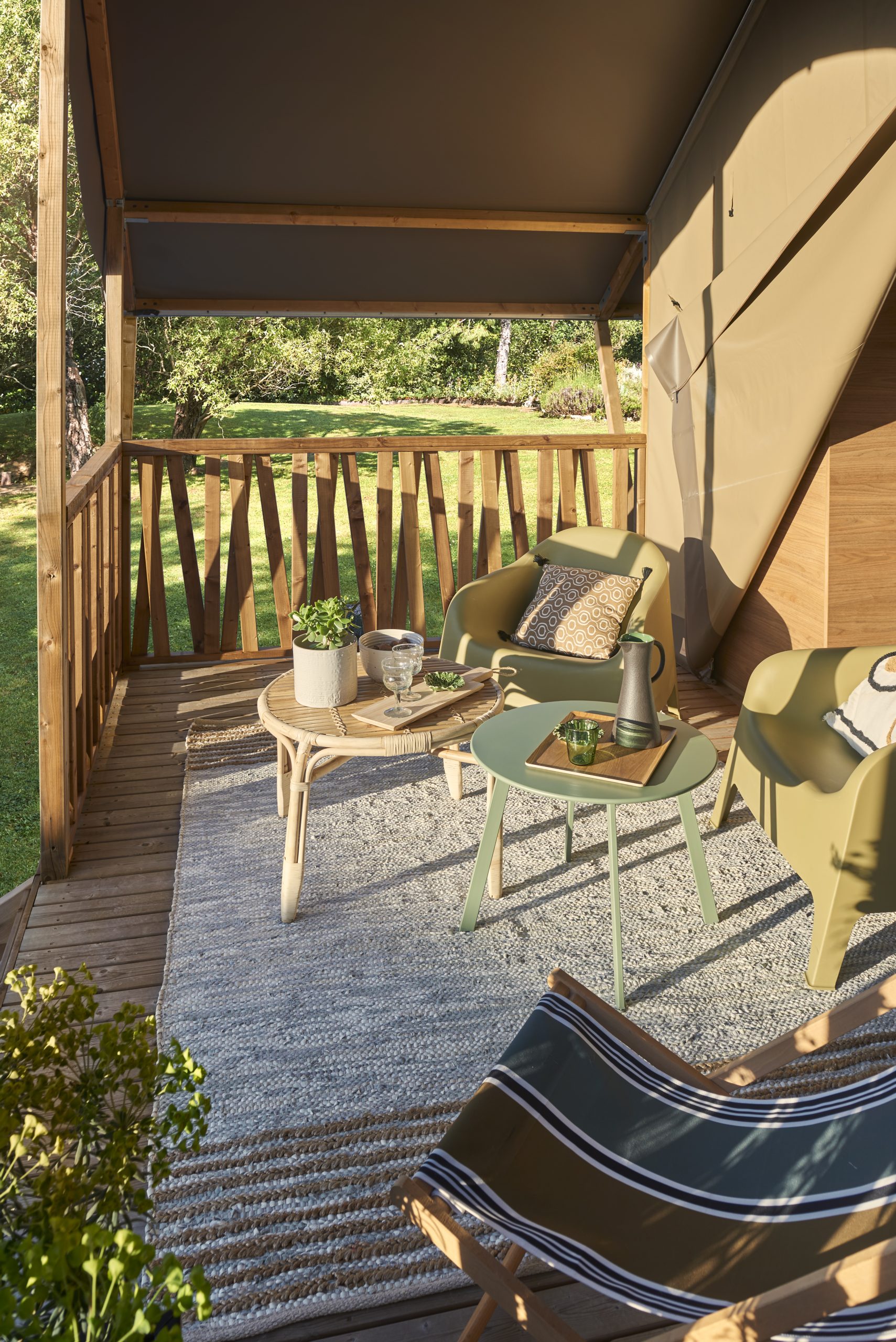 The covered terrace is a focal point in the lodge. It extends the living room and provides holidaymakers with a quiet space for special moments to share with friends and family.