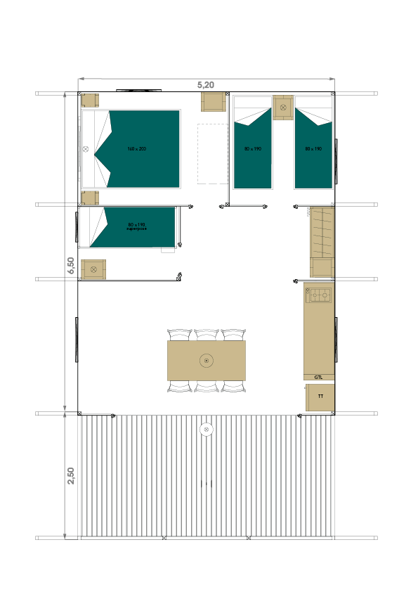 Wood Lodge 34-3 Home> Sunshine Lodges> Rental offer> Wood Lodge range>Wood Lodge 34-3 Wood Lodge 34-3 Optimised and very spaciousThe 3 rooms are independent with storage space designed for large families. 34 m2Surface3 Bedrooms6 People Download the pdfCall me back Pictures Equipment Blueprint Discover our catalogues Would you prefer to receive our Sunshine Mobile Homes, Sunshine Chalets and Sunshine Lodges catalogues so you can browse them at your leisure at home? Complete the form by clicking "Receive our catalogues" below. Receive our catalogues Download the catalogue More to discover in the same range Wood Lodge 34-3-S Fully-equipped and cosy Comfortable and spacious, this model is ideal for large families or groups of friends and offers a practical and spacious bathroom. 34 m2Surface3 Bedrooms1 Bathrooms6 People Wood Lodge 26-2 Natural and welcoming Family lodge par excellence, this model has a large living room that opens onto the outside and an XXL bedroom with a cot area. 26 m2Surface2 Bedrooms4 People Wood Lodge 26-2-S Comfortable and family-friendly A beautiful bathroom enhances this model, as do comfortable bedrooms with multiple storage areas. 26 m2Surface2 Bedrooms1 Bathrooms4 People Follow us! Find all the news of Sunshine Habitat, exclusive content and superb reports.