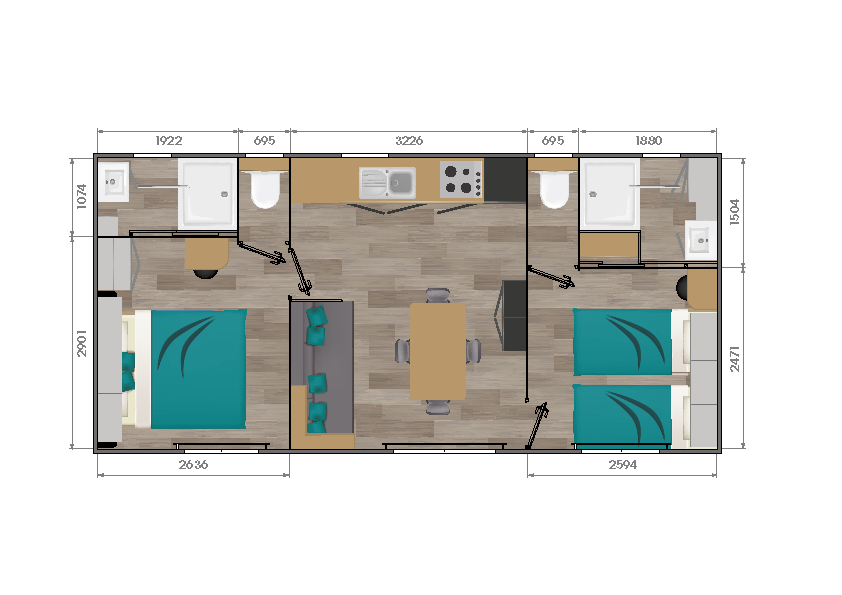 A model with everything you need for your comfort including bedrooms with bathrooms, private toilets and a dressing table-hairstyling station.