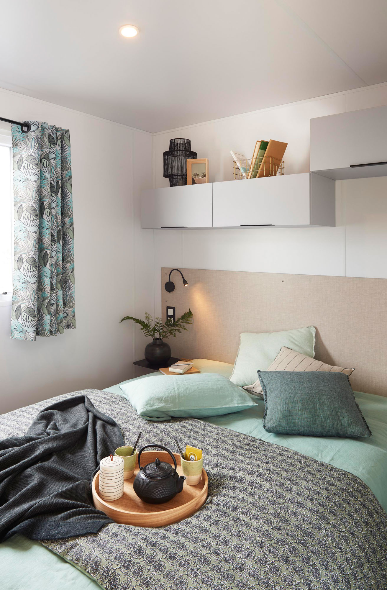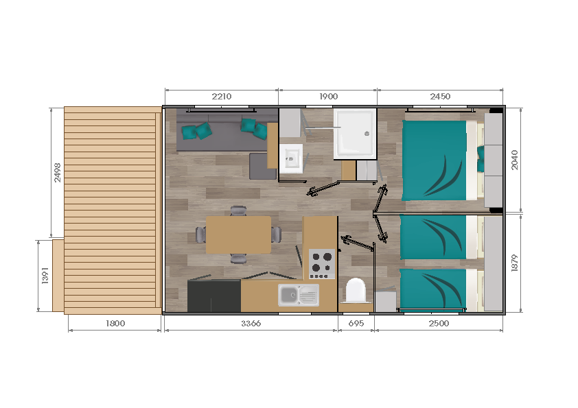 A vestibule separates the sleeping space from the living space, while the integrated terrace allows you to enjoy the outside with a large opening on the gable.