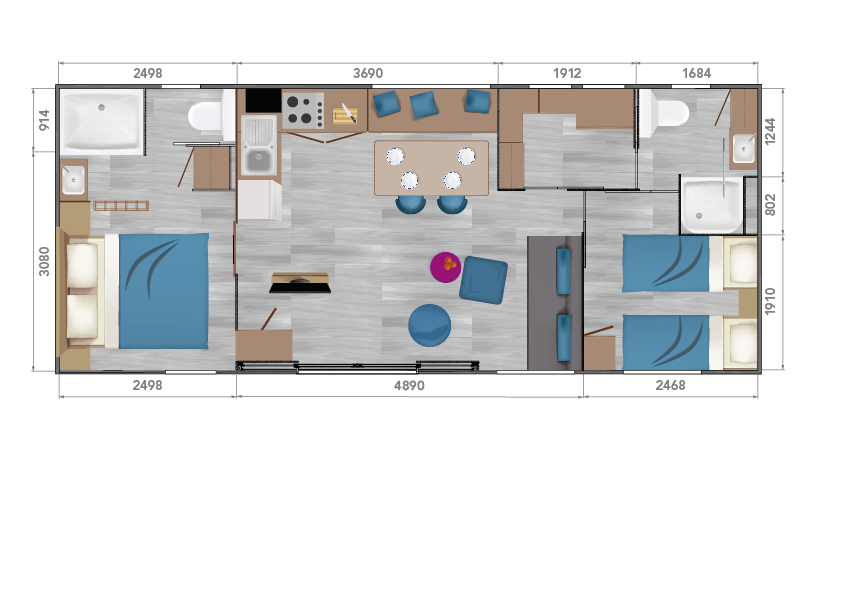 With 2 bathrooms for everyone's comfort, a large dressing room with a laundry area and a spacious living room.