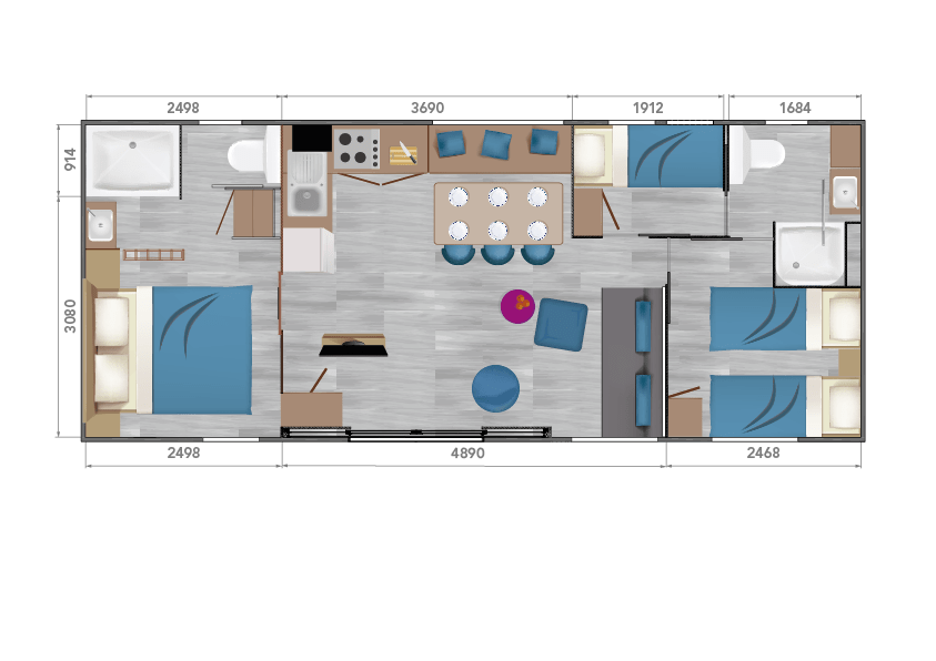 The first shower room interconnects with the 2 children’s bedrooms, while the second shower room and the master bedroom share the same space.