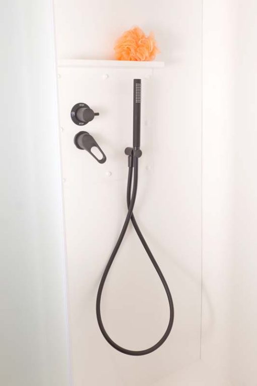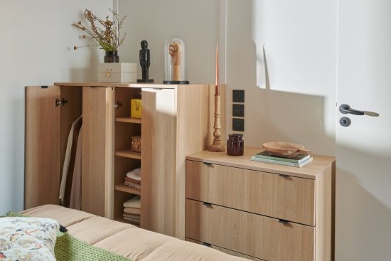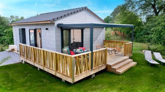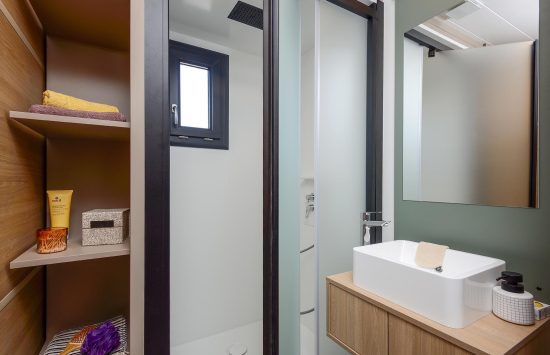 Découvrez tous les avantages de la gamme Résidence en seulement 49m² et une terrasse en façade. La salle de douche et les WC sont séparés par un couloir, offrant une meilleure organisation.