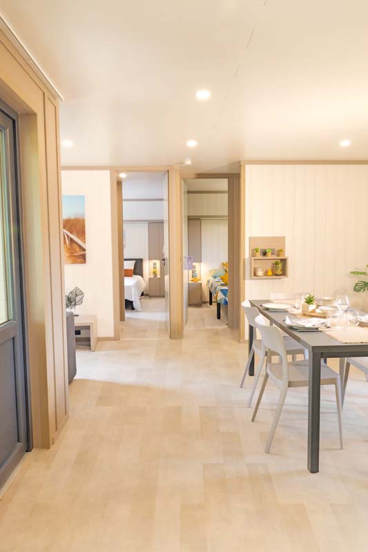 Faites le choix d’un chalet de loisirs chaleureux et confortable pour vos futures vacances afin de vous retrouver et de savourer des moments privilégiés tous ensemble. Dotés d'équipements de qualité et robustes, d'une décoration tendance et contemporaine, chacune des pièces des chalets de la gamme Village sont baignés de lumière tout au long de la journée.