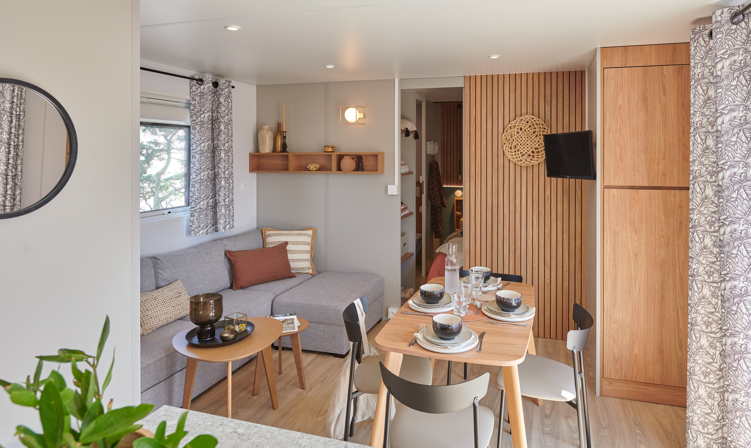 Que vous souhaitez moderniser la cuisine de votre mobil-home premium, la chambre de votre mobil-home de luxe ou repenser l'ensemble de votre espace, nous avons les solutions adaptées.