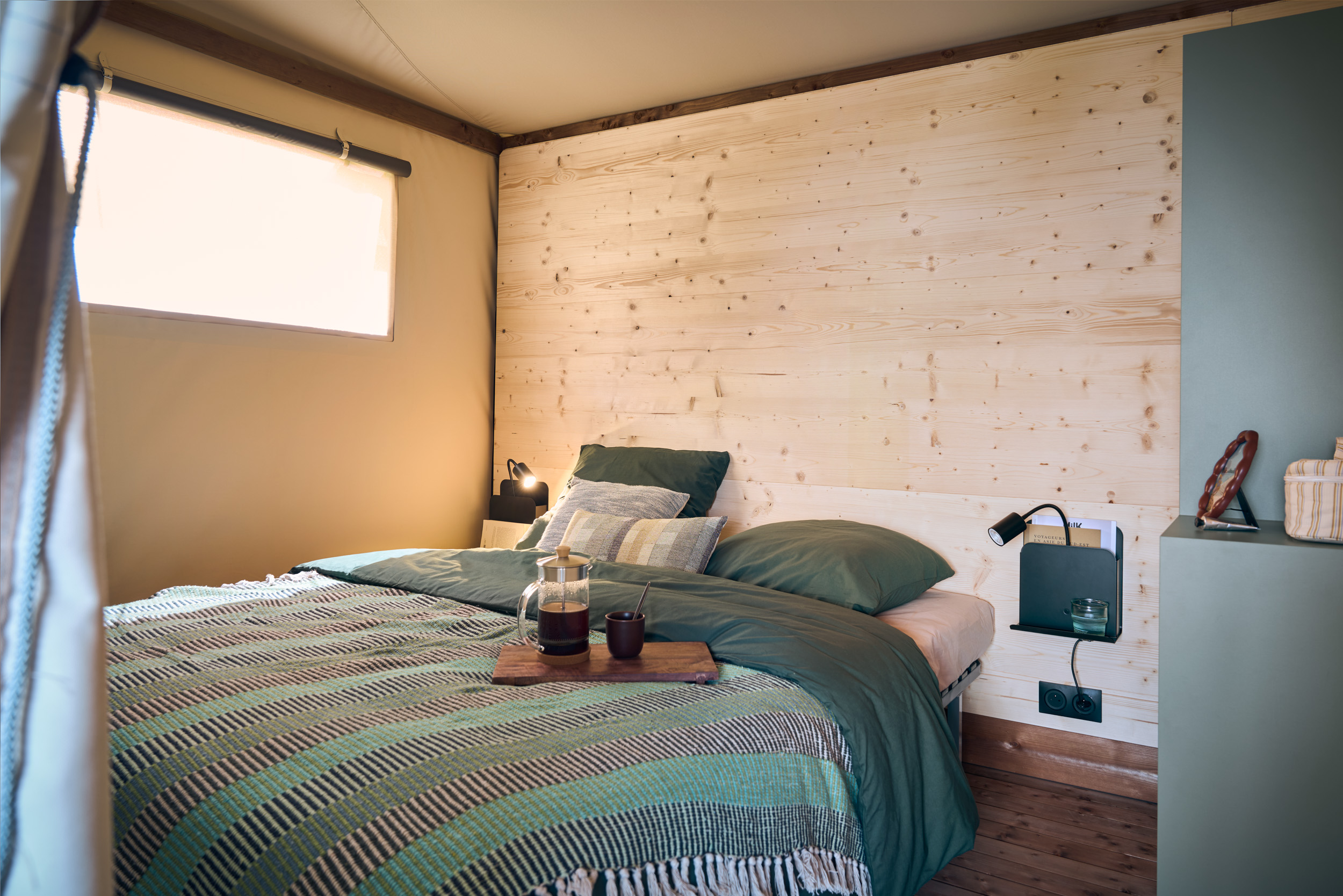 Pour cette nouvelle saison Jungle Lodge s'est refait une petite beauté : de nouveaux coloris, des agencements revus intégralement, un tout nouveau modèle le 34-2-S qui réinvente l’esprit glamping avec son intérieur sublimé par le bois pour une immersion totale en pleine nature ! Il allie confort, esthétique et solutions ingénieuses pour rafraîchir naturellement vos séjours sous habitats toilés.