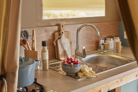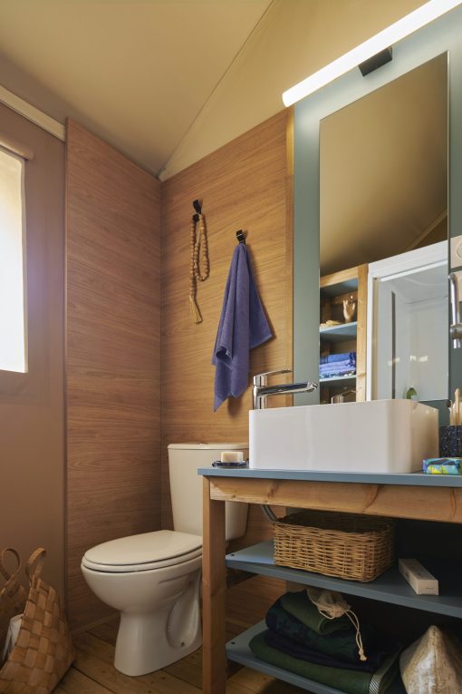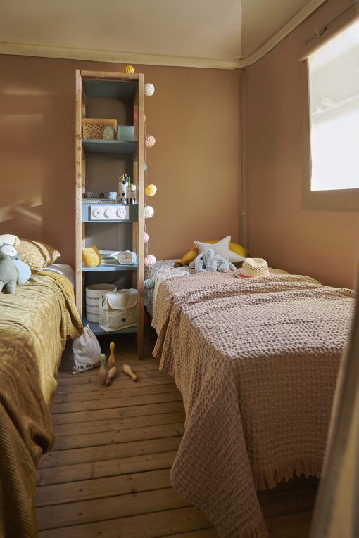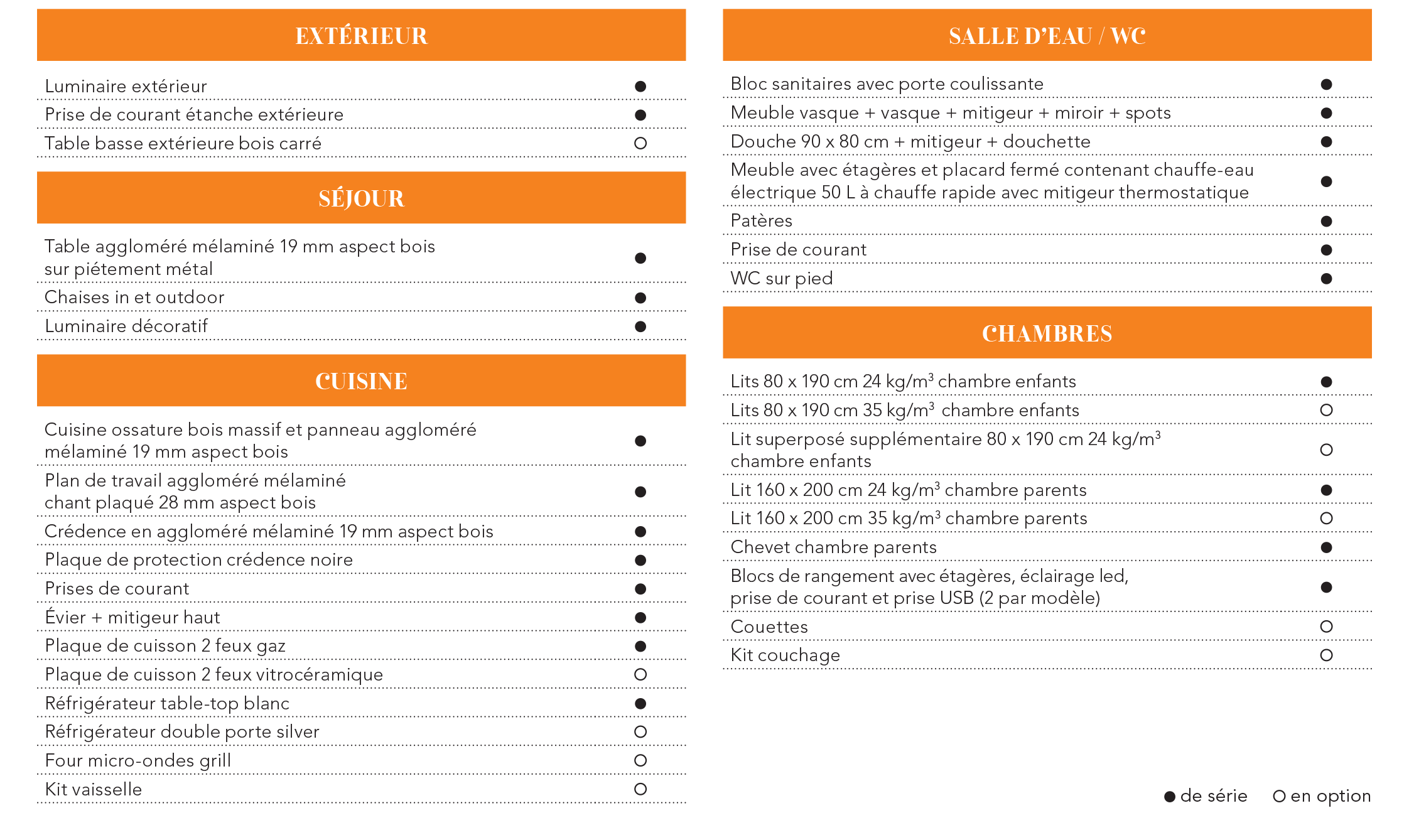 La cuisine ouverte donne sur la terrasse, la salle d’eau-WC est spacieuse et les chambres sont confortables avec du rangement.