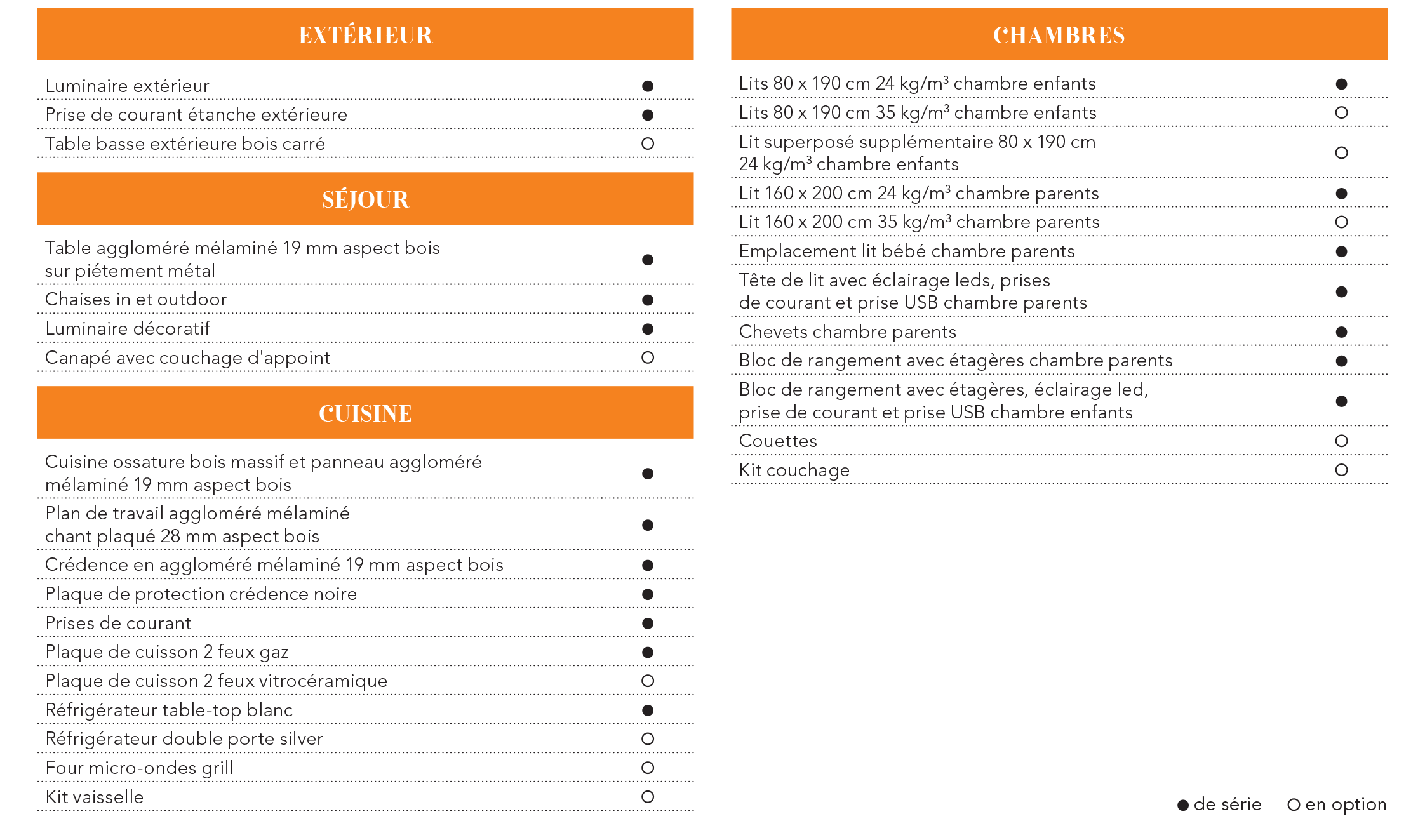 Lodge familial par excellence, ce modèle dispose d’un vaste séjour ouvert sur l’extérieur, d’une chambre XXL avec un espace pour lit bébé.