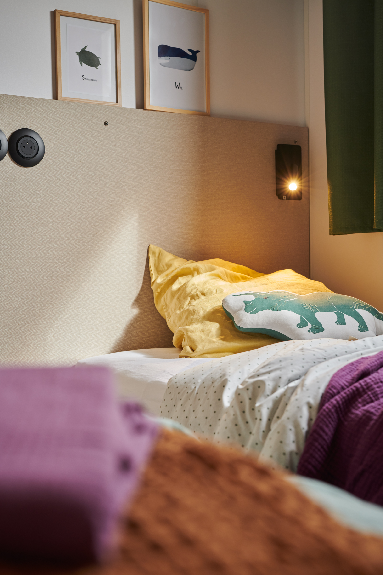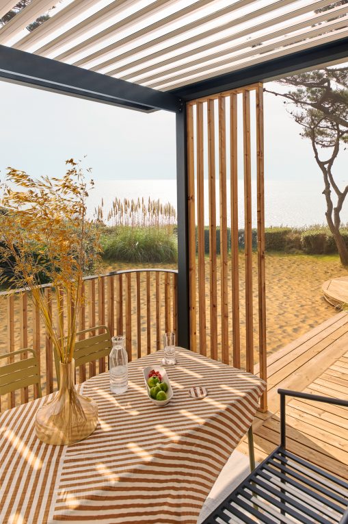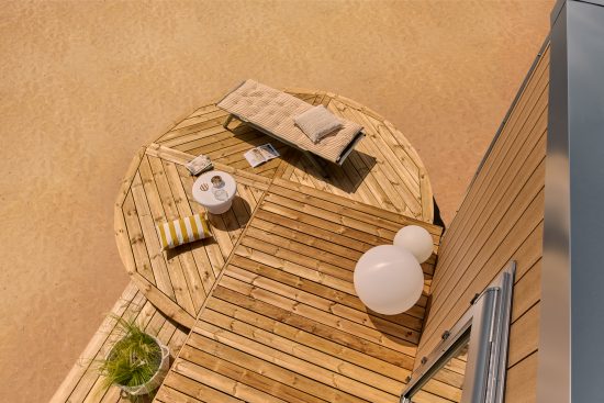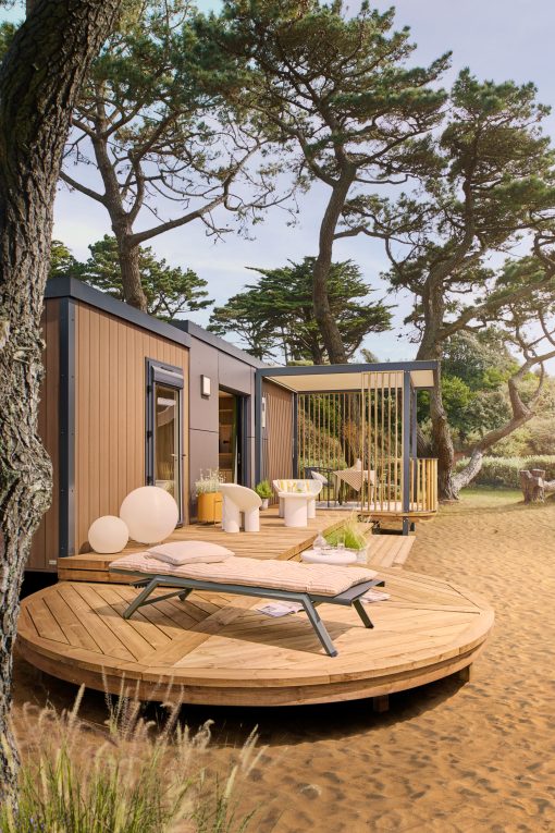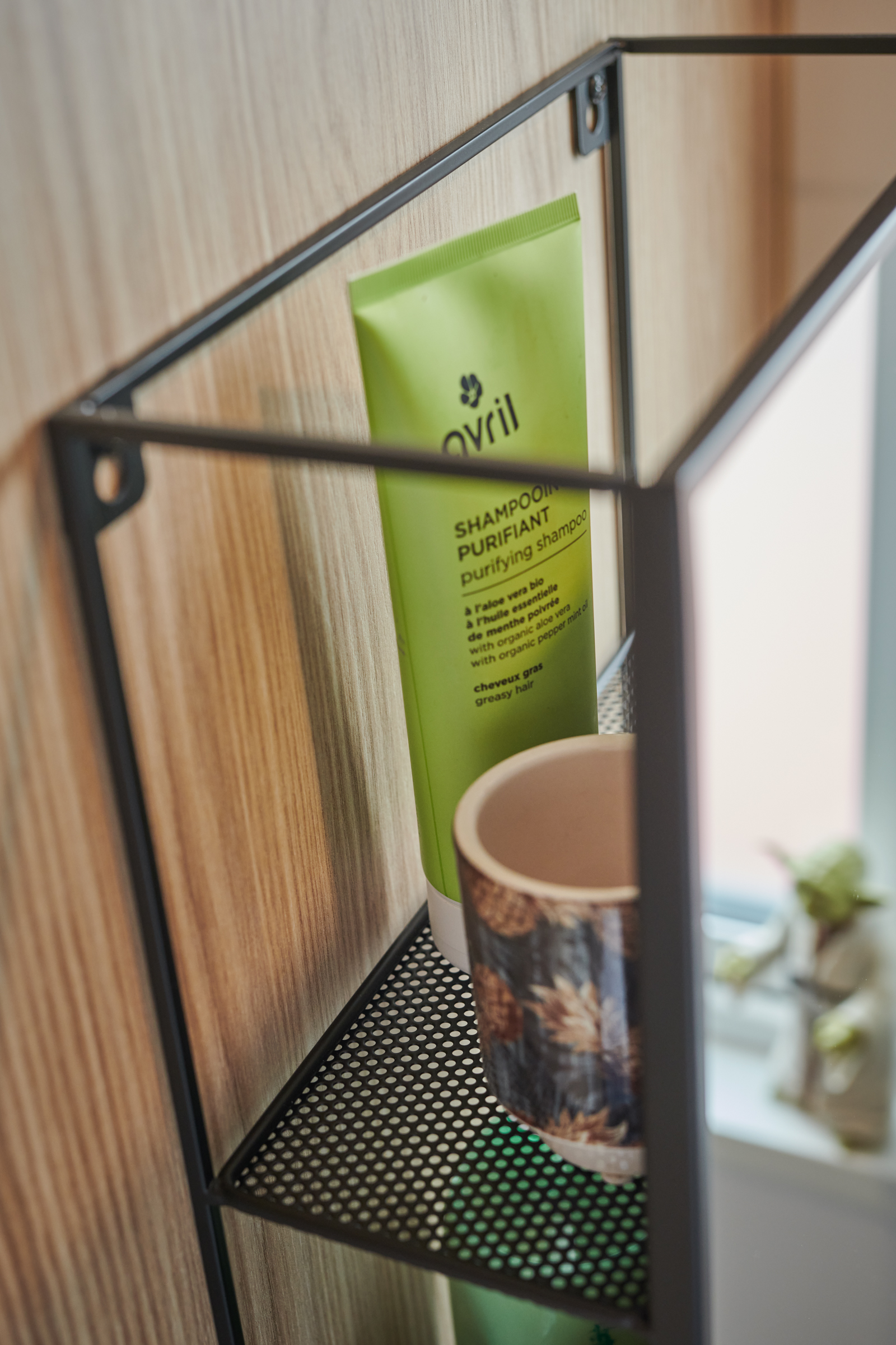 Une cuisine design, une suite parentale et un salon convivial avec sa chauffeuse et son totem. La bibliothèque quant à elle donne beaucoup de style au salon.