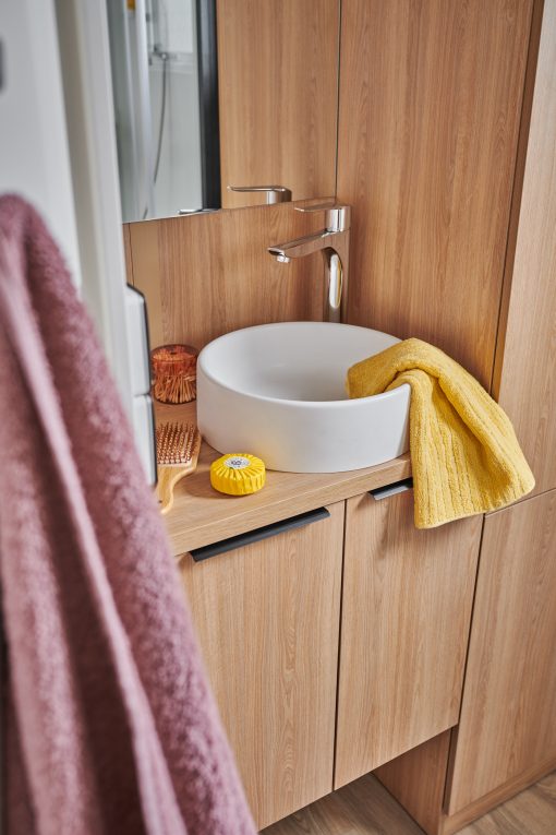 Un look moderne et une ouverture en pignon, ce modèle est composé d'une chambre spacieuse, d'un salon, d'une cuisine et d'une vaste salle de bains, avec en bonus une lumière traversante.