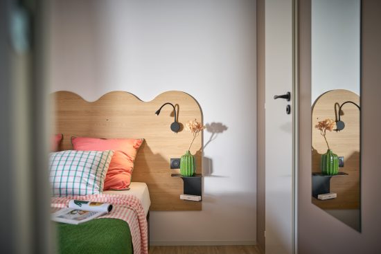 Un look moderne et une ouverture en pignon, ce modèle est composé d'une chambre spacieuse, d'un salon, d'une cuisine et d'une vaste salle de bains, avec en bonus une lumière traversante.