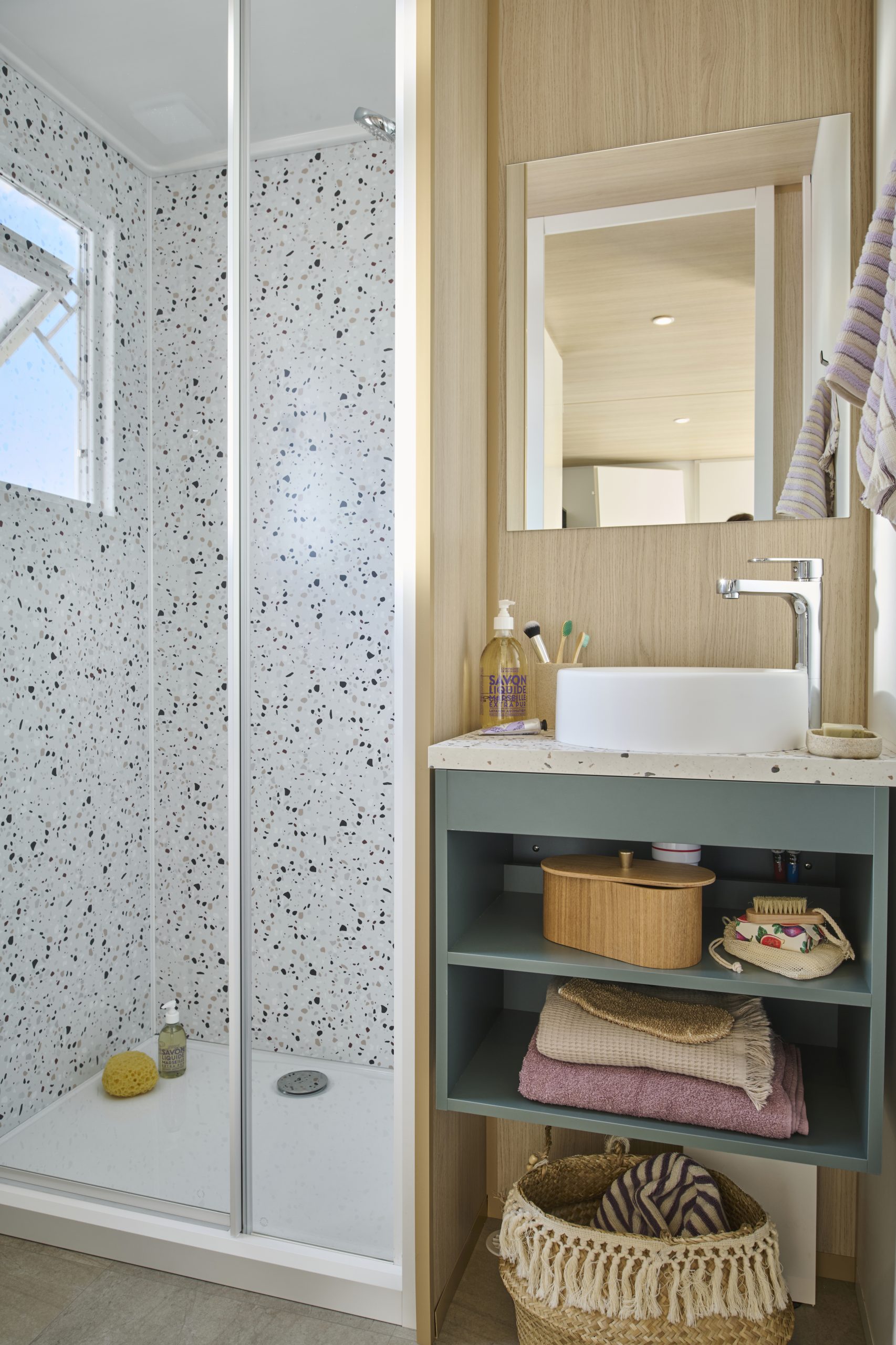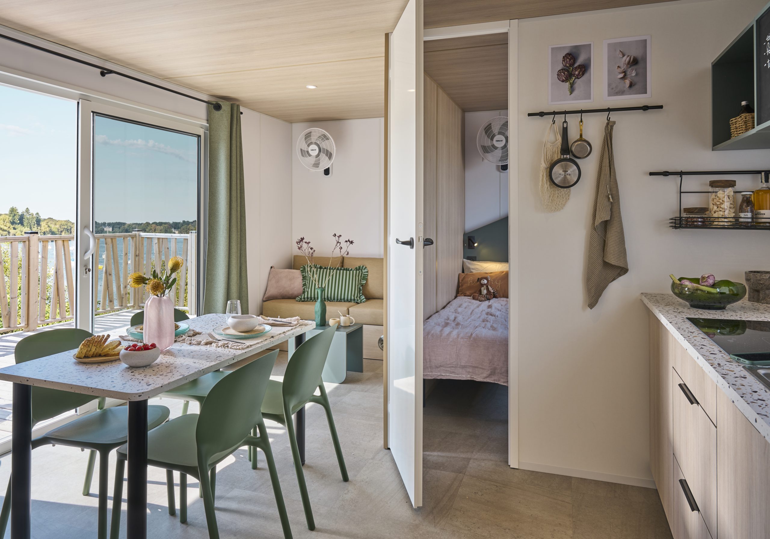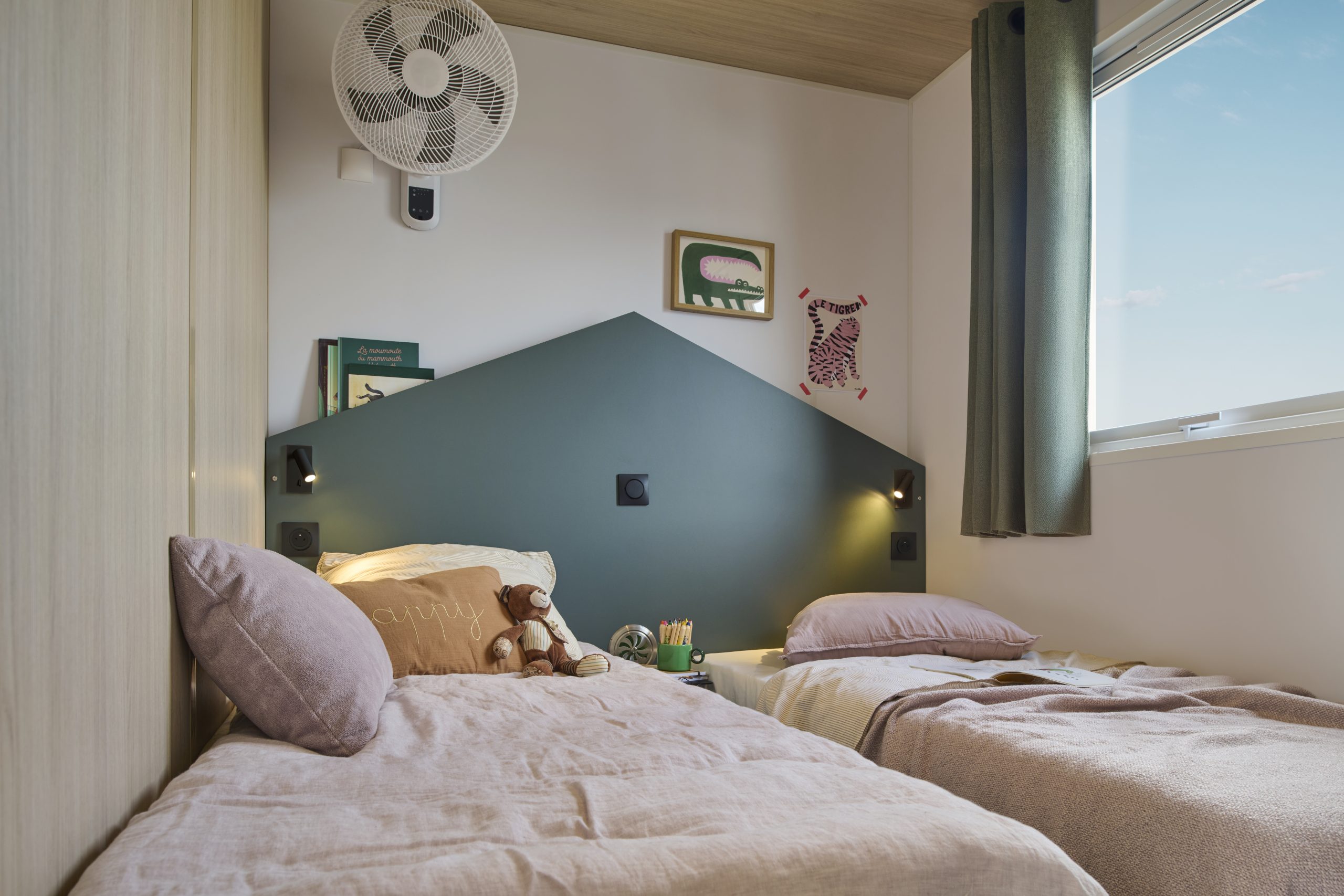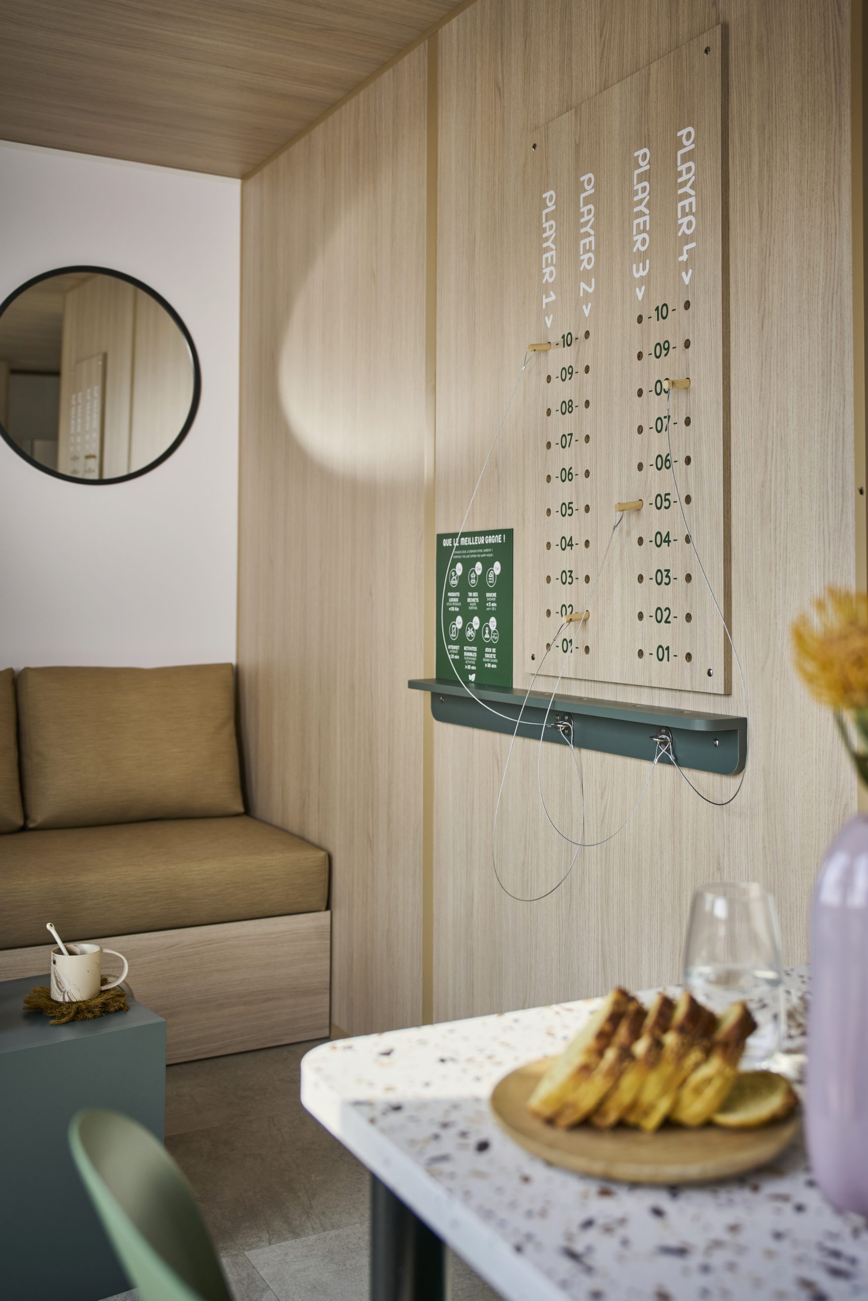 Ce nouveau modèle de mobil-home sain et solidaire fait rimer joyeusement sobriété avec convivialité. En plus d’être responsable, le séjour devient récréatif grâce à plusieurs outils et jeux à destination de toute la famille : un outil de suivi en temps réel des consommations, des jeux et défis écologiques pour toute la famille, un petit marche-pied dans la cuisine pour permettre aux enfants de mettre la main à la pâte… une dimension très appréciée des vacanciers testeurs qui sont 9/10 à recommander l’hébergement.